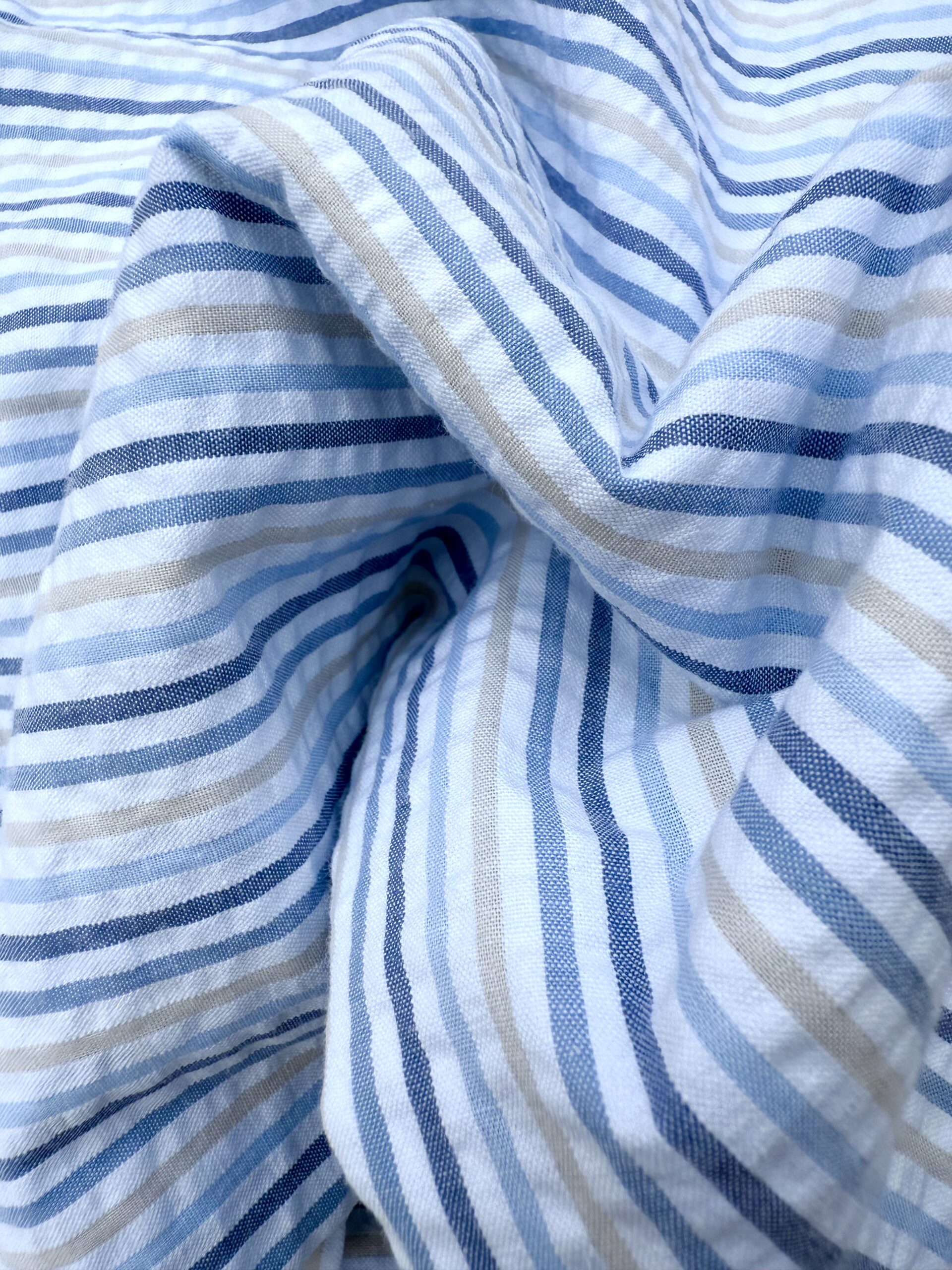 « Rayé » le moyen coussin chauffant KAME offre une esthétique fraîche et équilibrée, mêlant blanc, bleu et beige.